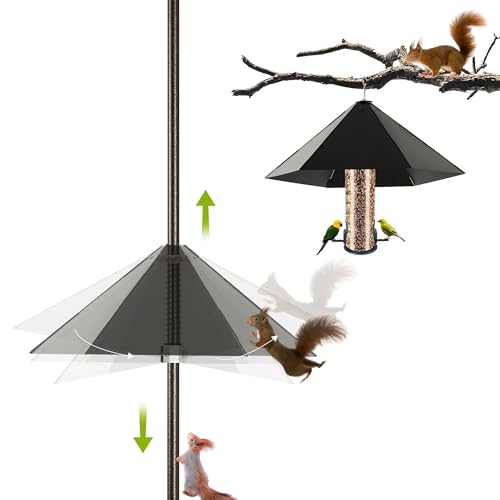 Measuring 19 inches in length with a height of 3 inches and width of 11 inches, this baffle fits most bird feeder poles comfortably. Its sturdy construction and thoughtful design protect the feeder from squirrels while maintaining easy access for birds. With simple installation and low maintenance, the Onlyfly Metal Squirrel Baffle offers a practical and effective way to enjoy watching birds without the nuisance of squirrel interference.
